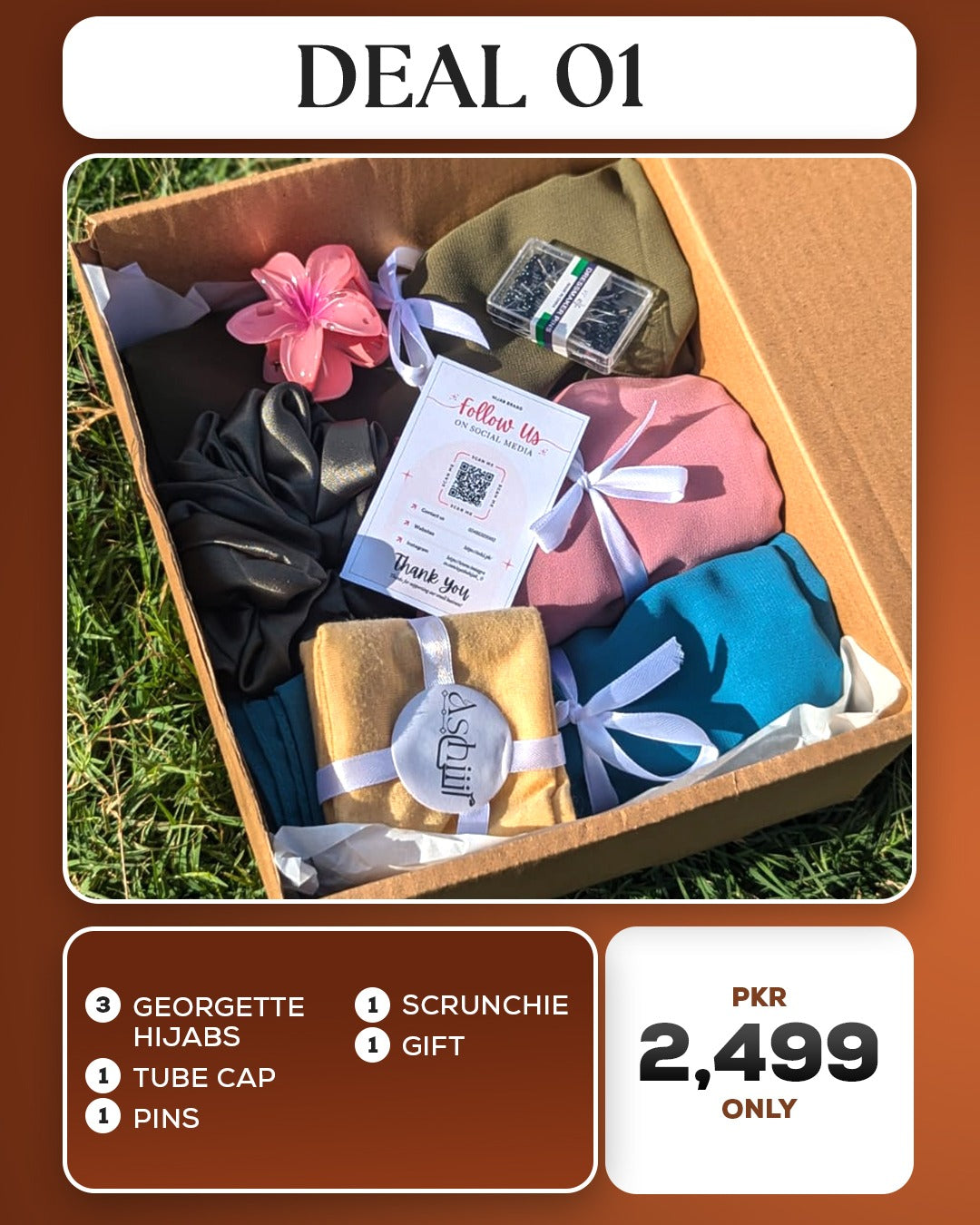 Ashii Deal 01 - Premium Georgette Hijab With Accessories